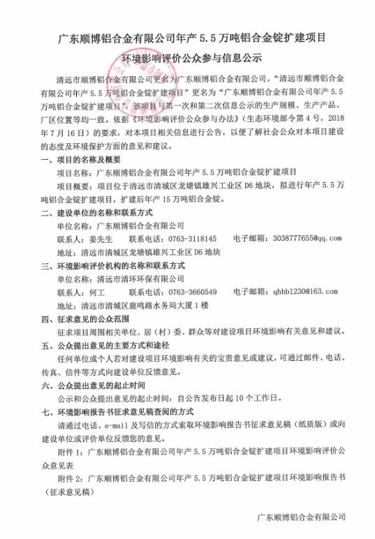 廣東順博鋁合金有限公司年產5.5萬噸鋁合金錠擴建項目環(huán)境影響報告書(征求意見稿)鏈接: https://pan.baidu.com/s/12sZ-Ry7BkuuX70teOCFETg提取碼: ui6t 復制這段內容后打開百度網(wǎng)盤。