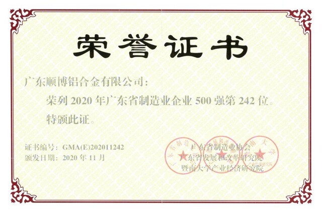 祝賀公司連續(xù)兩年榮獲“廣東省制造業(yè)企業(yè)500強(qiáng)”稱號(hào)